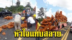 รถขบวนเทียน เกิดอุบัติเหตุ จนต้นเทียนพังเสียหาย ก่อนเข้าประกวด