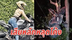 กาวใจ ขวัญใจสายซิ่งบิ๊กไบค์!! เสียหลักหลุดโค้ง ติดคาอยู่บนต้นไม้ คนขับกระเด็นไป 10 กว่าเมตรติดกระแพง อาการยังสาหัส