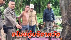 ล่ามารศาสนาปั่นจักรยานหนี! อาศัยช่วงฝนตกหนักแอบเข้ามาขโมยยกตู้บริจาคของวัด