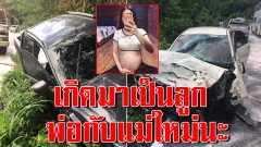 พ่อแม่น้ำตาคลอ ลูกหยุดหายใจ เก๋งเสียหลักพุ่งข้ามเลน มาชนอย่างจัง ไม่ประมาทใช่ว่าจะปลอดภัย