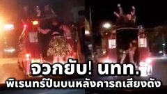 จวกยับ! สาวอัดคลิป กลุ่มนทท.ทำพิเรนท์อันตราย ปีนขึ้นหลังคาสี่ล้อแดง ส่งเสียงร้องโหวกเหวก ไม่เกรงใจชาวบ้าน