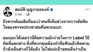 ‘บก.ลายจุด’ นักกิจกรรม โพสต์ถึง ‘ด้อมส้ม’ ที่มองว่าคนที่เห็นต่างจากการตัดสินใจของพรรคประชาชนคือพวกแบก