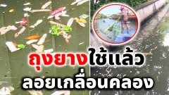 ทิ้งรักลงแม่น้ำ ถุงยๅงลอยเกลื่อน คลองบางกอกใหญ่ สนง.ระบายน้ำส่งจนท.ทำความสะอาด