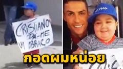 โรนัลโด้สั่งหยุดรถทีมเพื่อสวมกอดเด็กป่วยลูคีเมีย.. 'กอดผมหน่อย' คำวอนจากหนุ่มน้อยที่ถือป้ายรอเขา