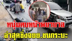 หนุ่มมือตบพยาบาล ขี่จยย.ซิ่งแซงรถตู้ ชนกระบะสวนทางมาเต็มๆ