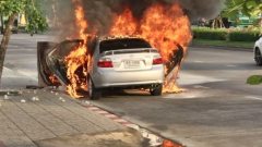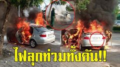 เจ้าของเก๋งขับมาดีๆ ไฟลุกท่วมทั้งคัน กู้ภัยตาไว ถ่ายเลขทะเบียน