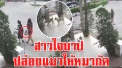 สาวใจบาป เอาแมวมาปล่อยทิ้ง จนหมารุมกัดตาย ยืนดูอย่างหน้าตาเฉย (คลิป)