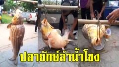 ชาวบ้านจับปลายักษ์ได้จากลำน้ำโขง 2 คนช่วยแบก (คลิป)