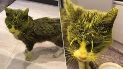 สะเทือนใจ แมวน้อยถูกอันธพาลพ่นสีอัดหน้า เสียแล้ว