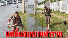 ชาวบ้านปลื้ม ตำรวจ เดินลุยน้ำช่วยแก้ปัญหาน้ำท่วมขังถนน