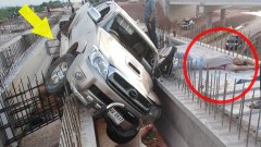 ขับขึ้นไปทำไม!! ที่แท้..เมาแล้วขับพุ่งขึ้นสะพานลอยกำลังก่อสร้าง
