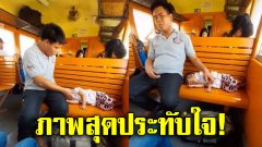 ภาพสุดประทับใจ!! คุณพ่อเลี้ยงเดี่ยวบนรถไฟ ถึงจะเหนื่อยล้า แต่ก็ดูแลลูกอย่างดี