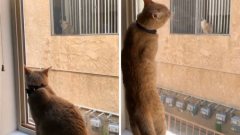 เจ้าเหมียวแอบมองสาวผ่านหน้าต่าง จนเจ้าของต้องออกโรง!