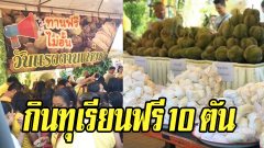 แห่รอกินทุเรียนฟรี 10 ตัน คนล้นวัดท่าไม้ คนแรกมารอคิวตั้งแต่ 6 โมงเช้า