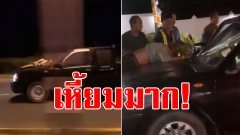 สุดเหี้ยม กระบะขับชนตาติดหน้ากระโปงรถ แล้วยังขับส่ายด้วยความเร็ว