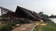 ถล่มอีกเเล้ว!พายุถล่มเมืองโคราช ศาลาพังทับชายเคราะห์ร้าย