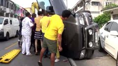 ลุงวัยกว่า 70 ปีขับรถแวน วูบพุ่งเสยท้ายรถเก๋งที่จอดข้างทางหงายท้องได้รับบาดเจ็บ