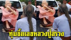ชาวบ้านแห่สาธุท่วมหัว อัญเชิญ รูปปั้น หลวงปู่สรวง เทวดาเดินดิน ขนาดเท่าองค์จริง เลขทะเบียนรถเข้าตาเต็มๆ