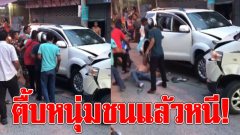 ชาวบ้านเดือดจัด ลากหนุ่มฟอร์จูนเนอร์มากระทืบ หลังขับชนรถหลายคันแล้วหนี (คลิป)