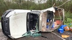 เกิดอุบัติเหตุรถปิคอัพเสียหลักพลิกตะแคงลงข้างทาง