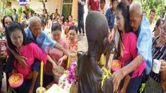 เปิดภาพประทับใจ สาวกตัญญูให้แม่ขี่หลังทำบุญวันสงกรานต์