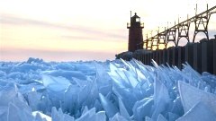 ชมความงามอันแสนประหลาด ทะเลสาบมิชิแกนที่เต็มไปด้วยแผ่นเศษแผ่นน้ำแข็ง
