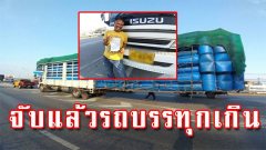 ตำรวจทางหลวง วิทยุสกัดจับแล้ว รถบรรทุกที่ขนถังจนเกินขนาดตัวรถไปเยอะมาก