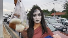 ฮือฮา แม่นาคขายหมูปิ้งสี่แยก ที่แท้คือดาราเก่า