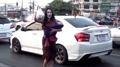 "แม่นาค" โผล่กลางสี่แยกไฟแดงเมืองกรุงเก่า อุ้มลูกน้อยเดินขายหมูปิ้ง - ไส้กรอก