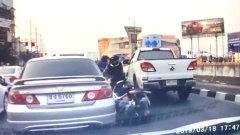 หัวร้อนมาจากไหน! กระบะพุ่งเสย จยย. จอดติดไฟแดงเลนขวา ก่อนขับหนีหน้าตาเฉย