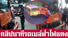 เปิดคลิปนาที รถเมล์ฝ่าไฟแดง ทำให้รถการไฟฟ้า พุ่งชนอย่างจัง (คลิป)