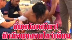 หนุ่มโชว์เพื่อน กลางวงเหล้า ลั่นมีของดีหนังเหนียว ชักมีดแทงคอตัวเอง