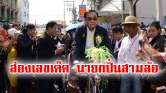 นายกฯ โชว์ปั่นสามล้อ ทักทายชาวโคราช ชาวบ้านฮือฮา เลขทะเบียนนี้มาแน่ๆ