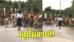 นักเรียนหญิง ไม่อายทำกิน ออกช่วยครอบครัวเลี้ยงวัว ทั้งชุดนักเรียน ไม่แคร์สายตาใคร
