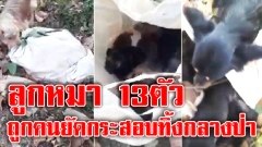 ลูกหมา 13 ตัวถูกมัดใส่กระสอบ ถูกปล่อยทิ้งไว้ในป่า แม่หมาเฝ้าลูกไม่ห่าง โชคดีมีคนมาพบ