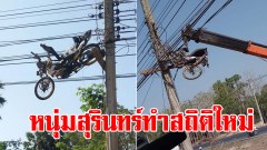 นักบิดไทยทำสถิติใหม่ บินขึ้นไปจอดบนเสาไฟฟ้าได้เป็นคนแรกของโลก