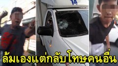 โป๊ะแตก!!โจ๋วัยเถื่อนหัวร้อน ขี่ จยย. มาล้มเอง สงสัยกลัวเสียหน้า ล้อมรถส่งของทุบจนยับ ลูกเมียเจ้าของรถร้องสนั่นด้วยความกลัว พวกมันก็ไม่หยุด