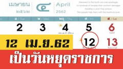 ครม.มีมติให้วันที่ 12 เมษายน 62 เป็นวันหยุดราชการ ทำให้วันหยุดสงกรานต์ยาว 5 วัน
