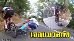 วินาทีนักปั่นจักรยานหักเลี้ยวหลบแมวที่วิ่งตัดหน้ารถ บอกเลยเจ็บหนักยกทีม!! (มีคลิป)