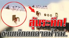 นาทีชีวิตช่วยหนูน้อยพลัดตกดาดฟ้ารพ. เสื้อติดอยู่ที่ป้ายตัวหนังสือตึก รอดปาฏิหาริย์!