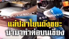 วิจารณ์ยับ ! เผยคลิปแฉพนักงานร้านซูชิดัง ที่แลเนื้อปลา แล้วโยนทิ้งถังขยะ ก่อนจะเก็บขึ้นมาทำต่อบนเขียง ชาวเน็ตรับไม่ได้ ! (คลิป)