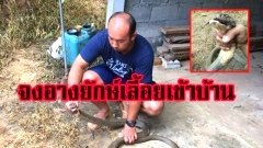 สาวตกใจจงอางยักษ์ จะเลื้อยเข้าบ้านปิดประตู งูเลี้ยวไปโรงรถ แจ้งกู้ภัยมาจับ ยาวกว่า 4 เมตร