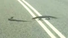 จะไปก็ไม่ได้ "สาว" เจอศึกเดือดกลางถนน "งูอสรพิษ" ปะทะ "กิ้งก่า" ลุ้นดูบทสรุปทำระทึก (คลิป)