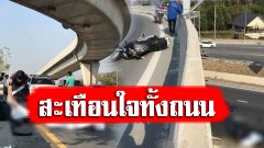 หนุ่มวัย 26 ควบ จยย.หลุดโค้งสะพานกลับรถร่างลอยตกลงพื้นสูง 5 เมตรดับคาที่
