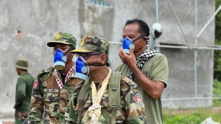 ทหารเขมรโพสต์รูปเซลฟี่พร้อมแคปชั่น "ควันพิษยังไม่จาง ปกป้องกันไว้ก่อน"