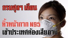 กรมศุลฯ โพสท์เตือนด่วน N95 ชนิดกันเชื้อโรค หิ้วมาต้องเสียภาษีนำเข้า 5% มูลค่าเพิ่มอีก 7% และต้องมีใบอนุญาต