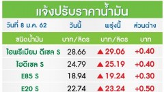 พรุ่งนี้(9ม.ค.62) ปรับขึ้นราคาน้ำมัน