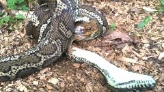 กินผิด..ชีวิตดับ!! งูหลามตัวเขื่องนอนตายคาสวน หลังคิดจับคางคกอ้อยกิน