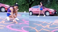 โดนแล้ว!! สาวรัสเซียมือบอนใช้สีสเปรย์พ่นข้อความบนถนน ถูกจับอ้างทำเพื่อตามหาแฟนที่หายตัวไป