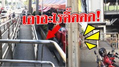 สถานีรถไฟฟ้าแพรกษาก็มี!!! “ทางลาดผู้พิการสุดแคบ” ซ้ำมีเสาไฟขวาง